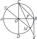 已知:如圖,在⊙O中,直徑AB⊥CD,BE切⊙O于B,且BE=BC,CE交AB于F、交⊙O于M,連接MO并延長,交⊙O于N.則下列結(jié)論中,正確的是