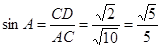 如圖所示,△ABC的頂點是正方形網(wǎng)格的格點,則sinA的值為()