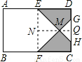 【答案】分析:連接EF,由于EF分別是ADBC上的中點,所以EF∥AB∥CD,而四邊形ABCD是長方形,所以四邊形EFCD是矩形,再過M作MQ⊥EF,同樣也垂直于CD,再利用GH=DC,可得相似比,那么可求出NM,MQ,以及EF,CD的長,再利用三角形的面積公式可求出△EFM和△MGH的面積,用矩形EFCD的面積減去△EFM的面積減去△GHM的面積,即可求陰影部分面積.