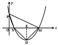 | 解:(1)證明:∵拋物線y=x2-2ax+b2經(jīng)過點(diǎn)M(a+c,0), ∴(a+c)2-2a(a+c)+b2=0, ∴ ∴ 由勾股定理的逆定理得:△ABC為直角三角形; (2)①如圖所示; ∵S△MNP=3S△NOP, ∴MN=3ON即MO=4ON, 又M(a+c,0), ∴N( ∴a+c, ∴(a+c)+ ∴c= 由(1)知:在△ABC中,∠A=90°, 由勾股定理得b= ∴cosC= ②能; 由(1)知 ∴頂點(diǎn)D(a,-c2), 過D作DE⊥x軸于點(diǎn)E,則NE=EM,DN=DM 要使△MND為等腰直角三角形, 只須ED= ∵M(jìn)(a+c,0),D(a,-c2), ∴DE=c2,EM=c, ∴c2=c,又c>0, ∴c=1, 由于 ∴ 當(dāng) |