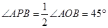 如圖,四個邊長為2的小正方形拼成一個大正方形,A、B、O是小正方形頂點,⊙O的半徑為2,P是⊙O上的點,且位于右上方的小正方形內(nèi),則∠APB等于( )