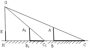 【小題3】(3)如果小剛沿線段BH向小雯(點H)走去,當小明走到BH中點B1處時,求其影子B1C1的長。