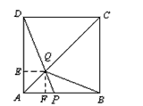 | 解:(1)在正方形ABCD中,無論點(diǎn)P運(yùn)動到AB上何處時, 都有 ∴△ADQ≌△ ABQ; (2)△ADQ的面積恰好是正方形ABCD面積的 過點(diǎn)Q作QE⊥AD于E,QF⊥AB于F, 則QE=QF ∴ 由△DEQ∽△DAP得 ∴ (3)若△ADQ是等腰三角形,則有QD=QA或DA=DQ或AQ=AD ①當(dāng)點(diǎn)P運(yùn)動到與點(diǎn)B重合時,由四邊形ABCD是正方形知QD=QA 此時△ADQ是等腰三角形; ②當(dāng)點(diǎn)P與點(diǎn)C重合時,點(diǎn)Q與點(diǎn)C也重合, 此時DA=DQ,△ADQ是等腰三角形; ③如圖,設(shè)點(diǎn)P在BC邊上運(yùn)動到CP=x時,有AD=AQ ∵ ∴ 又∵ ∴ ∴ ∵ ∴ |
