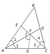 由∠B=60°,AD,CE分別是∠BAC,∠BCA的平分線,