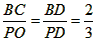 | (2)2PO=3BC(寫(xiě)PO= 證明:∵△POB≌△POA, ∴PB=PA, ∵BD=2PA, ∴BD=2PB, ∵BC//OP, ∴△DBC∽△DPO, ∴ ∴2PO=3BC; |