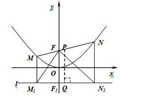 | (3)△M1FN1是直角三角形是直角三角形,理由如下: 由題知M1的橫坐標(biāo)為x1,N1的橫坐標(biāo)為x2,設(shè)M1N1交y軸于F1, 則F1M1·F1N1=-x1·x2=4, 而FF1=2,所以F1M1·F1N1=F1F2, 另有∠M1F1F=∠FF1N1=90°, 易證Rt△M1FF1∽R(shí)t△N1FF1,得∠M1FF1=∠FN1F1, 故∠M1FN1=∠M1FF1+∠F1FN1=∠FN1F1+∠F1FN1=90°, 所以△M1FN1是直角三角形; |
