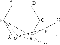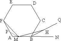如圖,正六邊形ABCDEF,點M在AB邊上,∠FMH=120°,MH與六邊形∠ABC外角的平分線BQ交于H點.