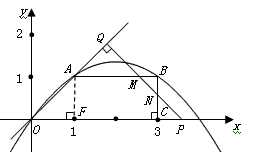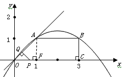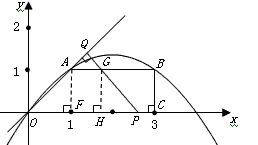 | 解:(1)由圖象可知:拋物線經(jīng)過原點(diǎn), 設(shè)拋物線解析式為y=ax2+bx(a≠0), 把A(1,1),B(3,1)代入上式得: 解得 ∴所求拋物線解析式為 |