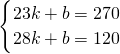 把(23,270)、(28,120)代入可得:,