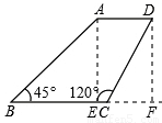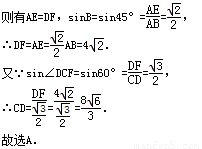 如圖,梯形ABCD中,AD∥BC,∠B=450,∠C=1200,AB=8,則CD的長為( )
