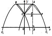 | 解:(1)當(dāng)m=1時(shí),△ABC為等腰直角三角形, 理由如下: 如圖:∵點(diǎn)A與點(diǎn)B關(guān)于y軸對(duì)稱,點(diǎn)C又在y軸上, ∴AC=BC, 過(guò)點(diǎn)A作拋物線C1的對(duì)稱軸,交x軸于D,過(guò)點(diǎn)C作CE⊥AD于E, 當(dāng)m=1時(shí),頂點(diǎn)A的坐標(biāo)為A(1,2), ∴CE=1, 又∵點(diǎn)C的坐標(biāo)為(0,1), ∴AE=2-1=1, ∴AE=CE,從而∠ECA=45°, ∴∠ACy=45°, 由對(duì)稱性知∠BCy=∠ACy=45°, ∴∠ACB=90°, ∴△ABC為等腰直角三角形; |
