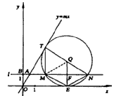 | 解:(1)①P=1,m= ②連結(jié)TM、ME、EN,NQ、MQ(如圖1) ∵OE切于點(diǎn)E,l∥x軸 ∴∠OEQ=∠QFM=90°,且NF=MF 又∵QF=2-1=1=EF, ∴四邊形MENQ是平行四邊形, ∴QN∥ME 在Rt△QFN中,QF=1,QN=2, ∴∠FQN=60° 依題意,在四邊形OEQT中,∠TOE=60°,∠OTQ=∠OEQ=90°, ∴∠TQE=120° ∴∠TQE+∠NQE =180°, ∴T、Q、N在同一直線上 ∴ME∥TN,ME≠TN,且∠TMN=90°, 又∠TNM=30°, ∴MT=2, 又QE=QN=2, ∴△EQN為等邊三角形, ∴EN=2, ∴EN=MT, ∴四邊形MENT是等腰梯形; 注:也可證明∠MTN=∠ENT=60° |