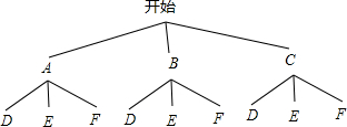所有可能情況是:(A,D)、(A,E)、(A,F(xiàn))、(B,D)、(B,E)、(B,F(xiàn))、(C,D)、(C,E)、(C,F(xiàn));