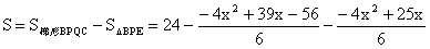 (3)當(dāng)線段PQ的垂直平分線與BC相交時,設(shè)交點為E,連接EP、EQ,設(shè)△EPQ的面積為S,求S關(guān)于x的函數(shù)關(guān)系式,并寫出S的取值范圍。