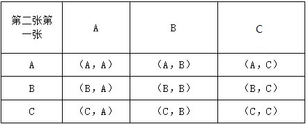 七巧板是我國流傳已久的一種智力玩具,小鵬在玩七巧板時用它畫成了3副圖案并將它們貼在3張完全相同的不透明卡片上,如圖.小鵬將這3張卡片背面朝上洗勻后放在桌子上,從中隨機抽取一張,放回后洗勻,再隨機抽取一張卡片.請你用列表法或畫樹狀圖(樹形圖)法,幫助小鵬求出兩張卡片上的圖案都是小動物的概率.(卡片名稱可用字母表示)