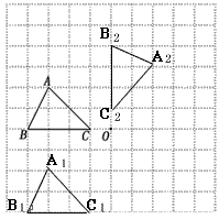 | 在如圖方格紙中,每個(gè)小方格都是邊長為1個(gè)單位的正方形,△ABC的三個(gè)頂點(diǎn)都在格點(diǎn)上(每個(gè)小方格的頂點(diǎn)叫格點(diǎn))。 (1)畫出△ABC向下平移4個(gè)單位后的△A1B1C1; (2)畫出△ABC繞點(diǎn)O順時(shí)針旋轉(zhuǎn)90°后的△A2B2C2,并求點(diǎn)A旋轉(zhuǎn)到A2所經(jīng)過的路線長。 |