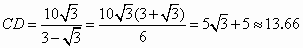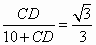 在我市迎接奧運圣火的活動中,某校教學(xué)樓上懸掛著宣傳條幅DC,小麗同學(xué)在點A處,測得條幅頂端D的仰角為30°,再向條幅方向前進10米后,又在點B處測得條幅頂端D的仰角為45°,已知測點A、B和C離地面高度都為1.44米,求條幅頂端D點距離地面的高度.(計算結(jié)果精確到0.1米,參考數(shù)據(jù):