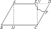 有一塊形狀如圖所示的玻璃,其中AD∥BC,不小心把DEF部分打碎,現(xiàn)在只測(cè)得AB=30cm,BC=70cm,∠B=600,∠C=1500,請(qǐng)根據(jù)測(cè)得的數(shù)據(jù)求出AD的長(zhǎng).![]()