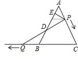 如圖,△ABC是邊長為6的等邊三角形, P是AC邊上一動(dòng)點(diǎn),由A向C運(yùn)動(dòng)(與A、C不重合),Q是CB延長線上一動(dòng)點(diǎn),與點(diǎn)P同時(shí)以相同的速度由B向CB延長線方向運(yùn)動(dòng)(Q不與B重合),過P作PE⊥AB于E,連接PQ交AB于D.