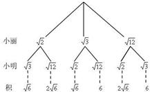 ∴共有6種等可能結(jié)果,其中積是有理數(shù)的有2種、,不是有理數(shù)的有4種 P (積是有理數(shù))=2/6=1/3