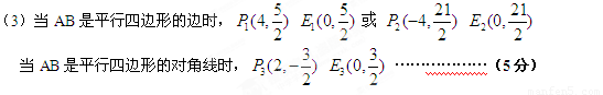【小題3】(3)在拋物線上找點P,在y軸上找點E,使以A、B、P、E為頂點的四邊形是平行四邊形,求點P、E的坐標.