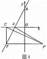 ③當P在第三象限時,∠P′CA為鈍角(如圖4),此時△P′CA不可能是等腰直角三角形.