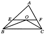 如圖,在△ABC 中,∠ABC和∠ACB的平分線交于點O,過點O作EF ∥BC,交AB于E、交AC于F。