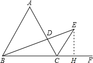 ∴∠ECH=180°-∠ACB-∠DCE=180°-60°-60°=60°,