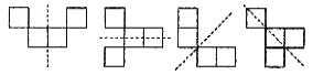 如圖,每個(gè)圖形都是由三個(gè)小正方形組成的,請(qǐng)你分別在每個(gè)圖形上補(bǔ)畫(huà)一個(gè)小正方形,使補(bǔ)畫(huà)后的每個(gè)圖形是軸對(duì)稱(chēng)圖形。