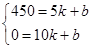 ,把(5,450)、(10,0)代入上式得: