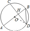 如圖,弦CD垂直于⊙O的直徑AB,垂足為H,且CD=,BD=,則AB的長(zhǎng)為