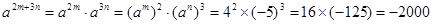 已知am=4,an=-5,則a2m+3n= .