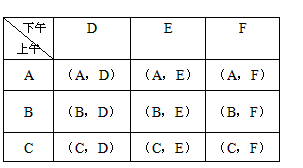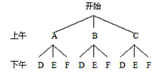小剛參觀上海世博會,由于僅有一天的時間,他上午從A—中國館、B—日本館、C—美國館中任意選擇一處參觀,下午從D—韓國館、E—英國館、F—德國館中任意選擇一處參觀.