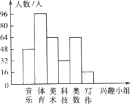 (2)補(bǔ)全頻數(shù)分布直方圖,并計(jì)算扇形統(tǒng)計(jì)圖中“體育”興趣小組所對應(yīng)的扇形圓心角的度數(shù);