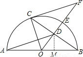 如圖,AB是半圓O上的直徑,E是的中點(diǎn),OE交弦BC于點(diǎn)D,過(guò)點(diǎn)C作⊙O切線交OE的延長(zhǎng)線于點(diǎn)F. 已知BC=8,DE=2.