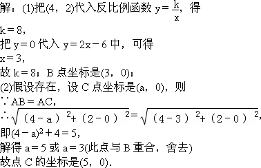 (2)在x軸上是否存在點(diǎn)C,使得AC=AB?若存在,求出點(diǎn)C的坐標(biāo);若不存在,請(qǐng)說(shuō)明理由.