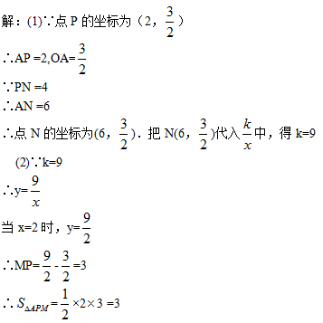 如圖,點(diǎn)P的坐標(biāo)為(2,),過(guò)點(diǎn)P作x軸的平行線交y軸于點(diǎn)A,交雙曲線(x>0)于點(diǎn)N,作PMAN交雙曲線(x>0)于點(diǎn)M,連接AM已知PN=4。