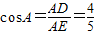∵AE是⊙O的直徑,∴∠ADE=90°