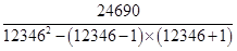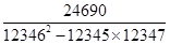 試題分析:直接計(jì)算的話,計(jì)算量較大,發(fā)現(xiàn)分母中的式子12345×12347轉(zhuǎn)化一下后可以用平方差公式:a2-b2=(a+b)(a-b),從而減少計(jì)算,由題,===24690.