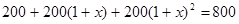 某超市一月份的營業(yè)額為200萬元,第一季度總營業(yè)額為800萬元, 設(shè)平均每月營業(yè)額的增長率為x,則由題意列方程為 ★ .