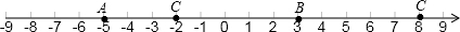 在數(shù)軸上,如果點A,B分別表示-5,3,點C是與點B距離為5的點.