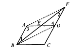 如圖,在□ABCD中,點E是AD的中點,BE的延長線與CD的延長線相交于點F。