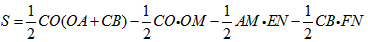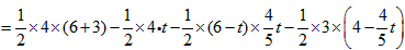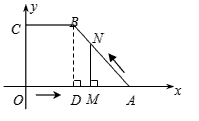 | 解:(1)過點(diǎn)B作BD⊥OA于點(diǎn)D,則四邊形CODB是矩形, BD=CO=4,OD=CB=3,DA=3, 在Rt△ABD中, 當(dāng)MN∥OC時(shí),MN∥BD, ∴△AMN∽△ADB, ∵AN=OM=t,AM=6-t,AD=3, ∴ (2)過點(diǎn)N作NE⊥x軸于點(diǎn)E,交CB的延長線于點(diǎn)F, ∵NE∥BD, ∴△AEN∽△ADB, 即 ∵EF=CO=4, ∴FN=4- ∵ ∴ 即 由 ∴當(dāng)t=4時(shí),S有最小值,且S最小= (3)設(shè)存在點(diǎn)P使MN⊥AC于點(diǎn)P, 由(2)得AE= ∴ME=AM-AE= ∵∠MPA=90°, ∴∠PMA+∠PAM=90°, ∵∠PAM+∠OCA=90°, ∴∠PMA=∠OCA, ∴△NME∽△ACO ∴NE:OA=ME:OC ∴ 解得t= ∴存在這樣的t,且t= |