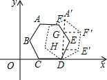 分析:先連接A′D,過點F'作F′G⊥A′D于點G,過點E'作E′H⊥A′D于點H,由正六邊形的性質(zhì)得出A′的坐標(biāo),再根據(jù)每6個單位長度正好等于正六邊形滾動一周即可得出結(jié)論.