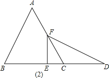 當(dāng)F在AC上時(shí),如圖(2)同理可得:EC=2