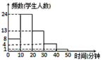 李老師為了解班里學(xué)生的作息時間表,調(diào)查了班上50名學(xué)生上學(xué)路上花費的時間,他發(fā)現(xiàn)學(xué)生所花時間都少于50分鐘,然后將調(diào)查數(shù)據(jù)整理,作出如下頻數(shù)分布直方圖的一部分(每組數(shù)據(jù)含最小值不含最大值).請根據(jù)該頻數(shù)分布直方圖,回答下列問題: