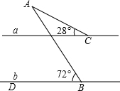 分析:根據(jù)兩直線平行,同位角相等求出72°角的同位角,再根據(jù)三角形的外角性質(zhì)解答即可.