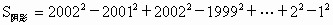 如圖所示,有2002個(gè)正方形,它們的邊長(zhǎng)分別是2002,2001,…,2,1,求陰影部分面積.