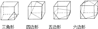 解:截面的形狀可能是三角形、四邊形、五邊形、六邊形,如圖所示.