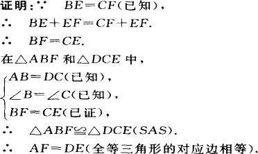 如圖,點E、F在BC上,BE=CF,AB=DC,∠B=∠C,求證:AF=DE.